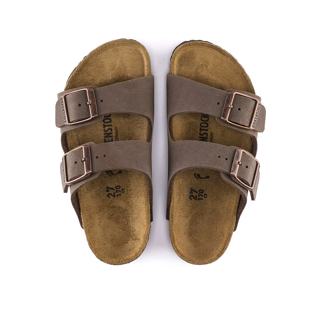 The Arizona sandal, sized down just for kids. Our iconic style is updated in signature Birkibuc®, durable for them and easy to clean for you. Designed on an original contoured footbed for play-all-day support.