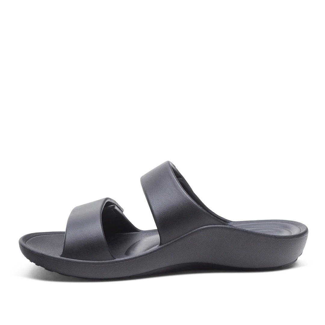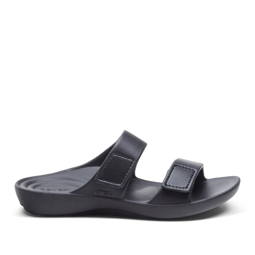 Embrace effortless style and exceptional comfort with the Kaia Slide. Crafted with Aetrex Orthotic technology, this chic slide offers optimal support, balance, and alignment. The UltraSky™ EVA material provides extra cushioning and durability, making every step feel like a dream. The Kaia ensures your feet stay comfortable all day long. The slightly raised heel and contoured footbed deliver a modern, sleek look, while the design makes them perfect for any summer activity.