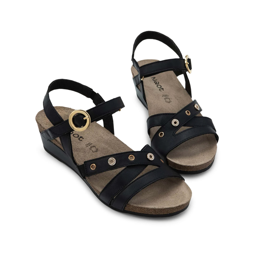 Introducing Sparkle - your ultimate sandal for effortless style and unparalleled comfort. Envision this: a sophisticated design with a faux buckle hook and loop closure and eye-catching hardware ornamentation, giving you that modern flair you desire. Embrace the perfect blend of convenience and elegance with a secure, adjustable fit that seamlessly combines fashion and functionality. Crafted with Naot's anatomic cork and latex footbed wrapped in pampering suede and molds to the shape of your foot with wear, ensuring personalized comfort. The Fantasy Collection's 44mm sole offers both elegance and support.