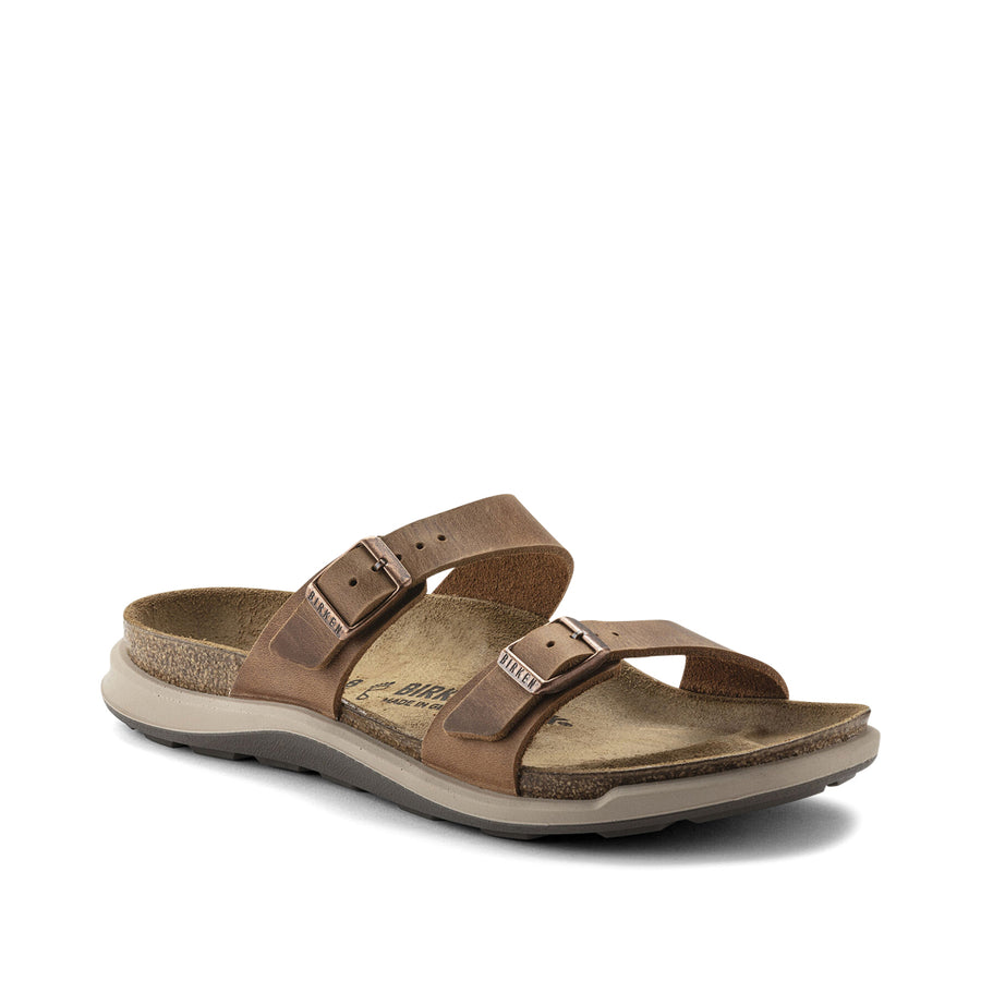 The Sierra is the perfect two-strap sandal for camping, hiking, travel, and all of your adventures. Designed with active BIRKENSTOCK fans in mind. This version pairs iconic Birkenstock features including nubuck leather uppers, classic adjustable buckle closures and suede footbed liners with direct-injection outdoor-ready outsoles for increased traction and durability. The upper is made of especially thick, oiled nubuck leather.